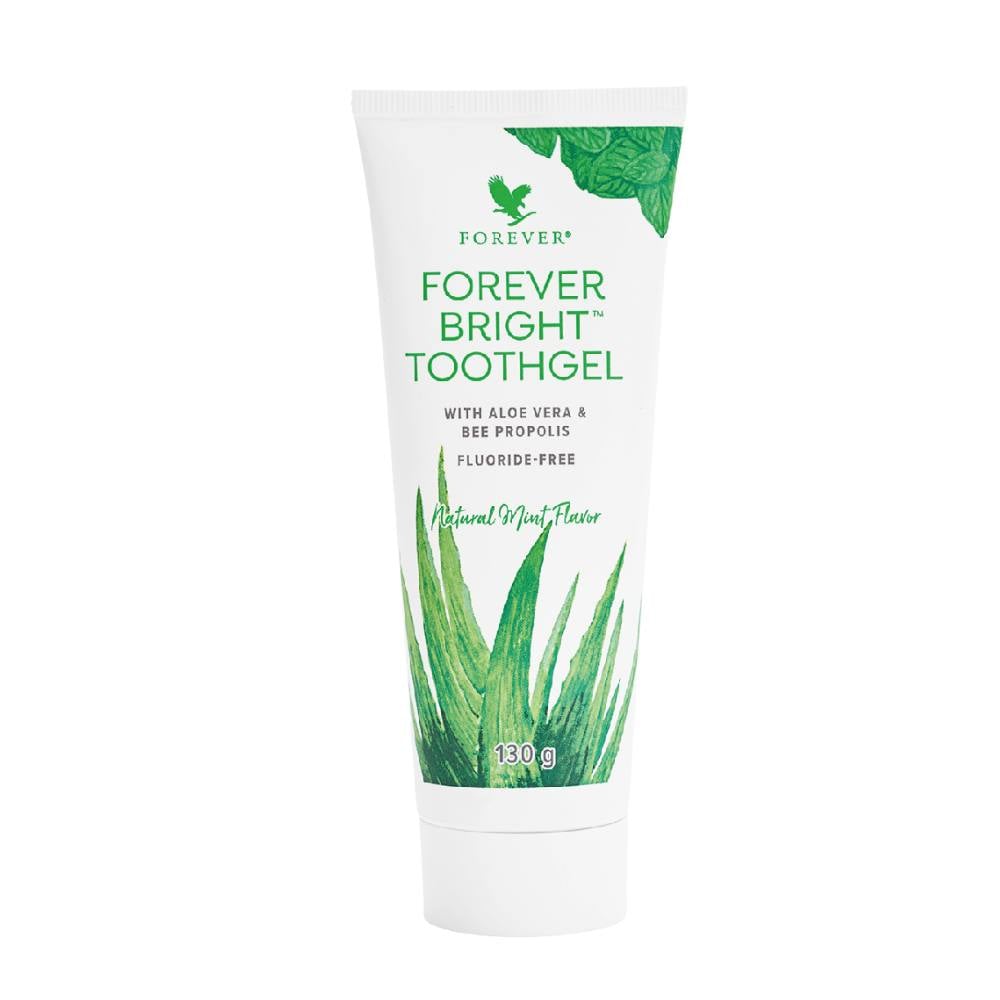 Forever Bright Toothgel es una pasta dental premium formulada con gel estabilizado de aloe vera y propóleos de abeja, ideal para mantener encías saludables, dientes limpios y un aliento fresco. Su fórmula sin flúor es segura, efectiva y apta para toda la familia, incluyendo niños y personas con sensibilidad dental.
